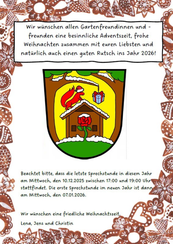 Ab dem 5.11.2025 sind wir jeden Mittwoch im Vereinsheim von 17 - 19 Uhr für euch da. Bitte beachtet, dass die Sprechstunde am Donnerstag nicht mehr stattfindet.